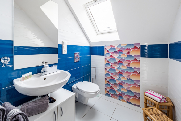 Das Apartment verfügt über zwei Badezimmer – in einem davon befinden sich Waschmaschine, Trockner, Bügeleisen und Bügelbrett. Jedes Badezimmer ist mit Dusche, Waschbecken und WC ausgestattet. Zur weiteren Ausstattung gehören ein Fernseher und kostenfreies WLAN im gesamten Apartment.