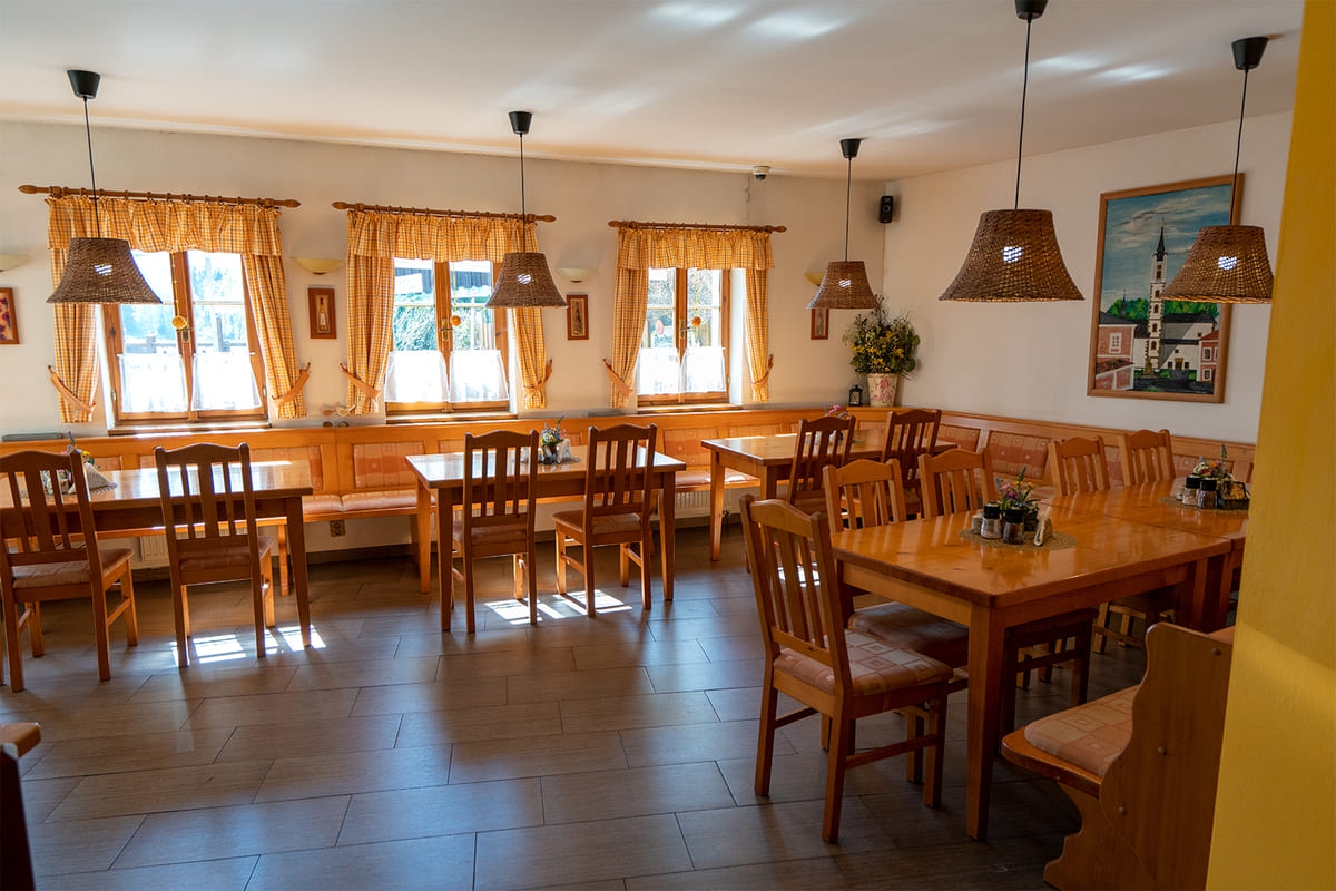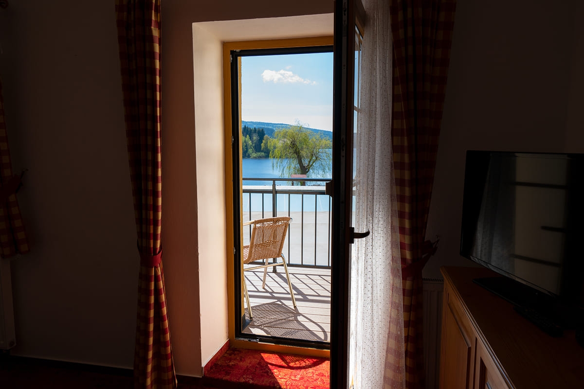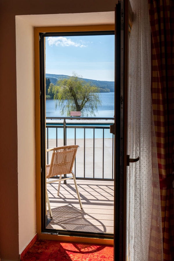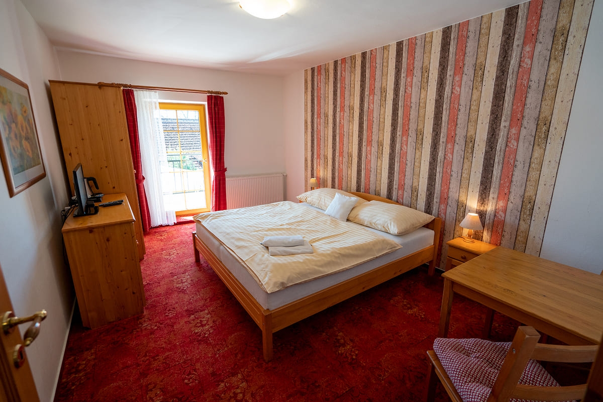 Jedes Zimmer ist komfortabel ausgestattet mit eigenem Bad (WC, Dusche), Fernseher, einem kleinen Flur und einer Sitzecke. Genießen Sie je nach Zimmerlage einen herrlichen Blick auf den Lipno-See oder auf den gegenüberliegenden Hügel „Marta“ mit seiner Skipiste. Vier der Doppelzimmer verfügen über einen Balkon. Kostenfreie Parkplätze stehen direkt an der Pension für Sie bereit.