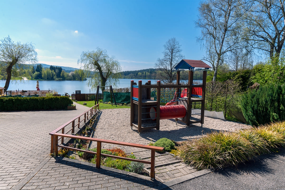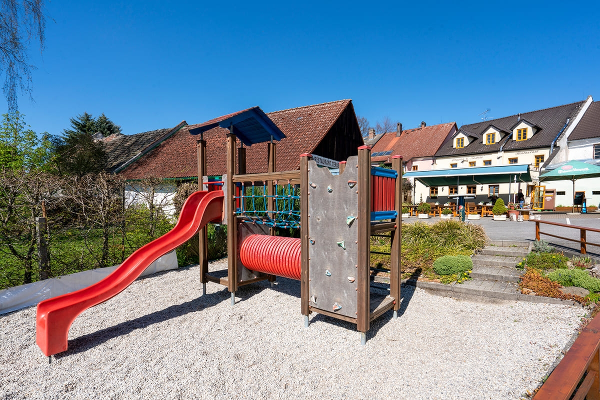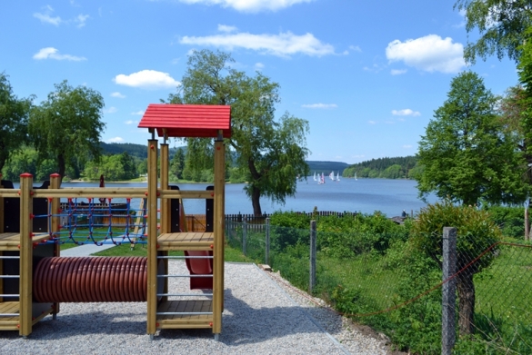 In den Sommermonaten lädt unser schöner, eingezäunter Garten mit Blick auf den Lipno zum Verweilen ein. Hier finden Sie eine Tischtennisplatte für sportliche Matches und für unsere kleinen Gäste eine Kinderecke mit Klettergerüst, Sandkasten und einem kleinen Planschbecken zur Abkühlung.