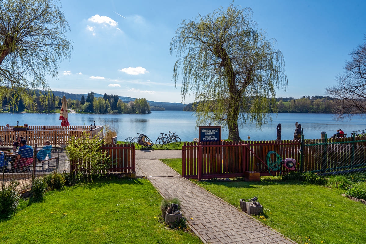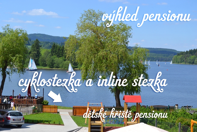 Ein besonderes Highlight ist unsere Lage: Direkt vor der Pension verläuft einer der schönsten Wege Tschechiens – die Jezerní inline stezka (See-Rad- und Inlineweg). Nur 50 Meter entfernt finden Sie zudem eine Haltestelle des lokalen Shuttles (Bus/Fähre), mit dem Sie bequem Teilstrecken des Weges zurücklegen und entspannt zur Pension zurückkehren können.