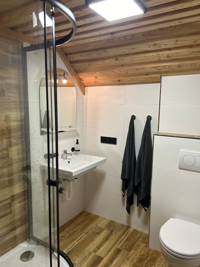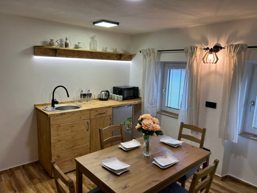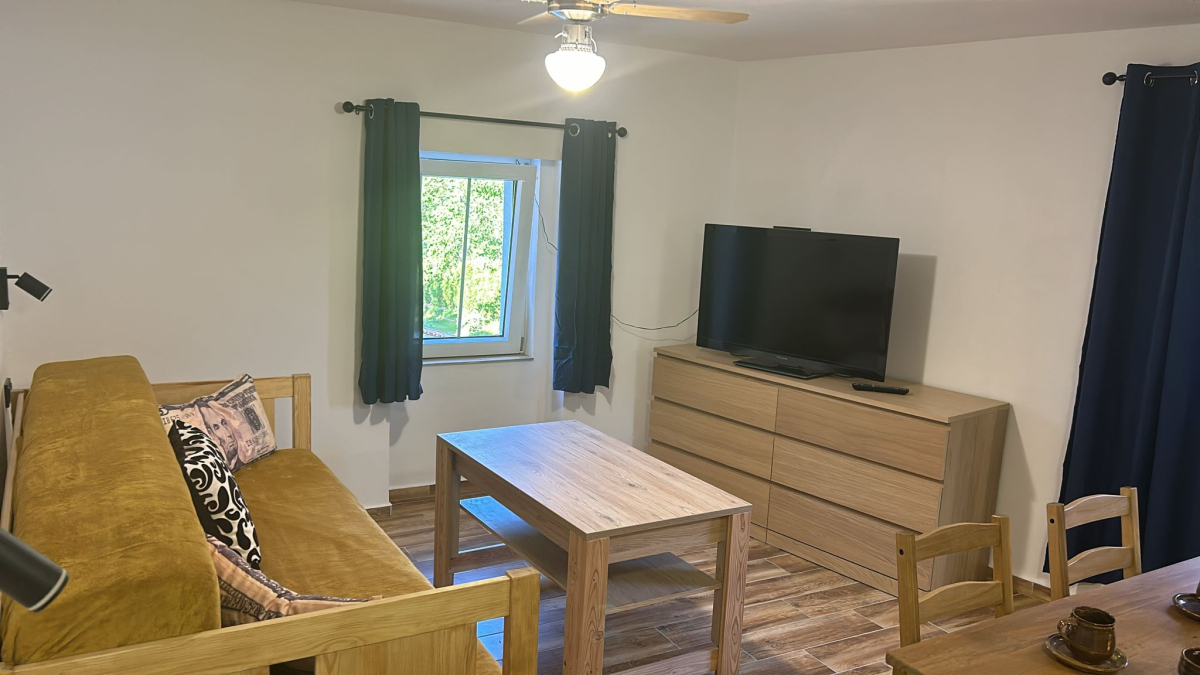 Kleines, gemütliches Apartment mit Wohnzimmer, Schlafzimmer, Küchenzeile und eigenem Bad. Ideal für Paare oder Familien mit Kind. Dank des direkten Zugangs zum Garten können Sie jederzeit den Duft des Waldes und das Rauschen des Flusses genießen.